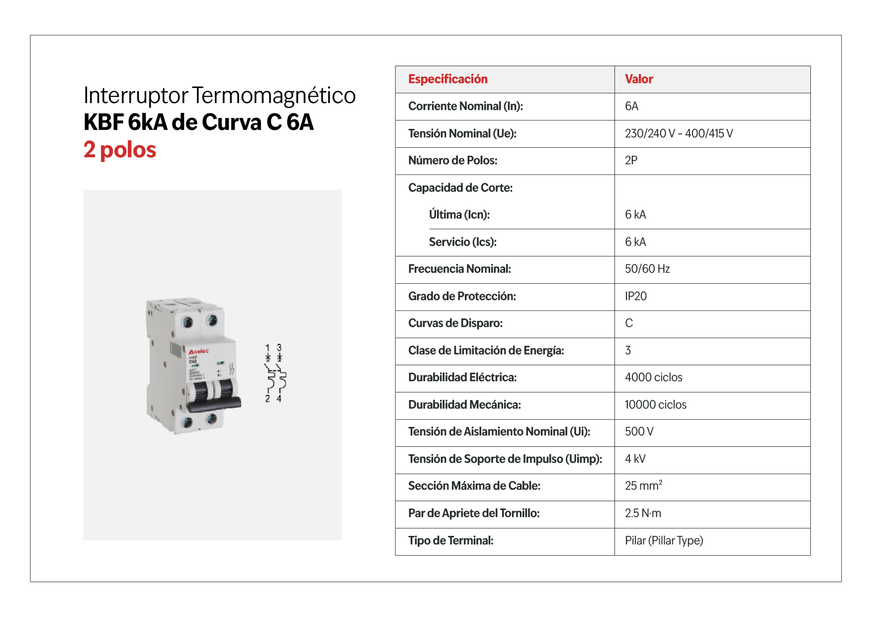 - Capacidad de ruptura (Icn): 6 kA.