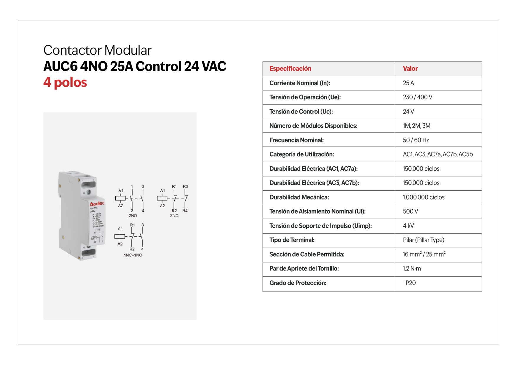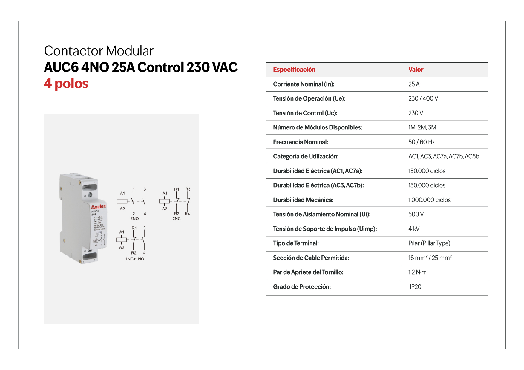 Durabilidad Eléctrica (AC3, AC7b): | 150.000 ciclos |
