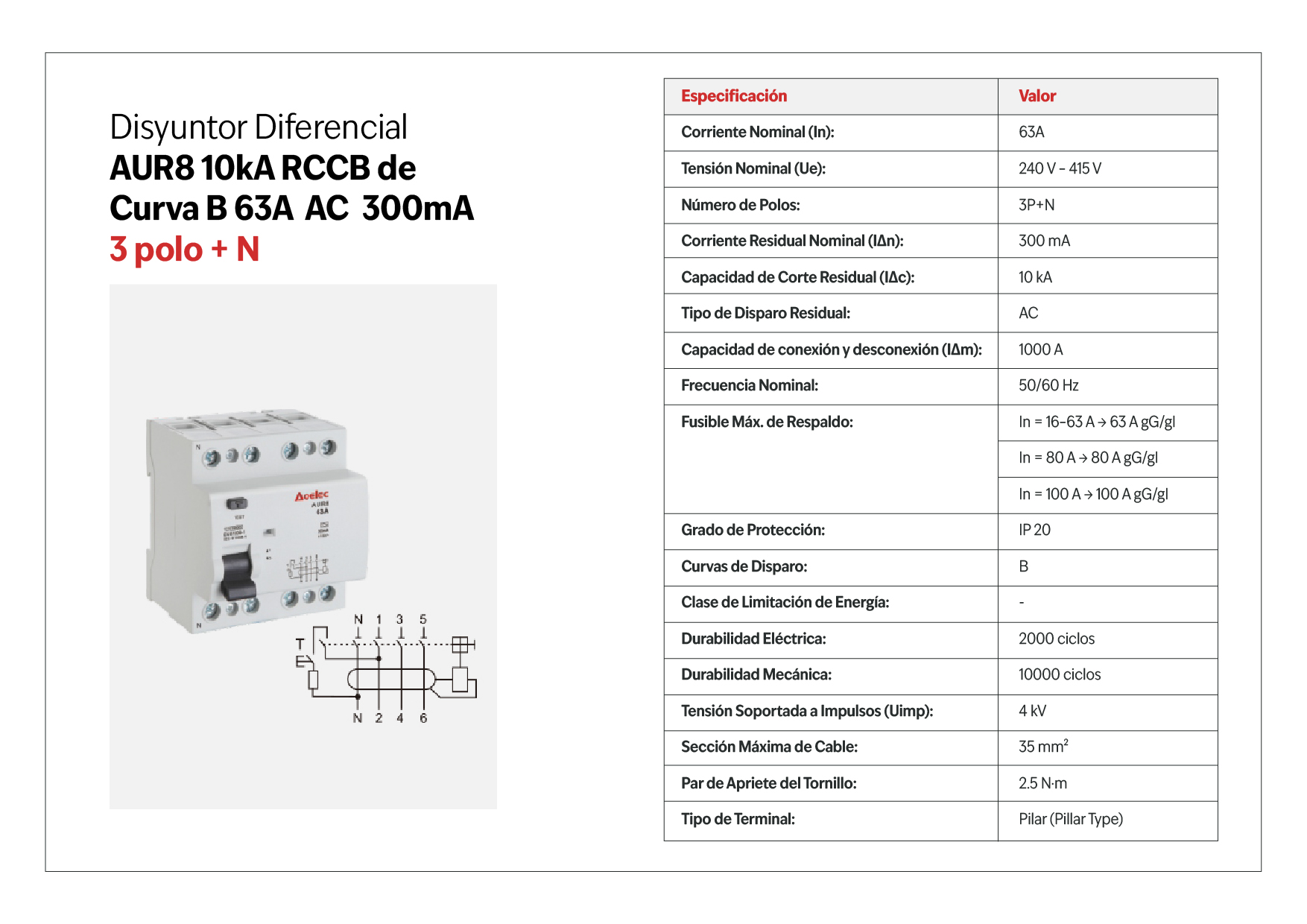 Capacidad de Corte Residual (IΔc) | 10 kA |