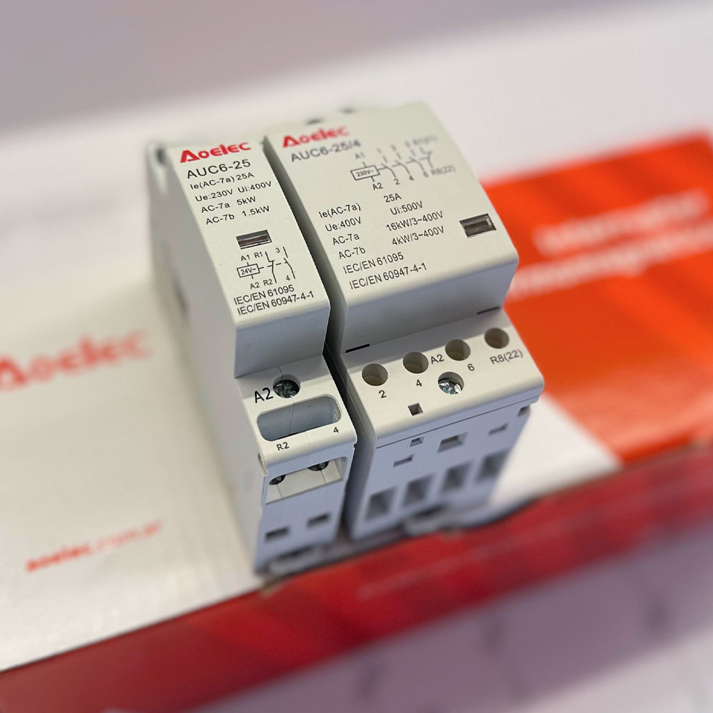 Control eficiente de cargas eléctricas. Los contactores modulares AOELEC permiten automatizar y gestionar el encendido y apagado de cargas como iluminación, motores o sistemas HVAC. Son silenciosos, compactos y compatibles con sistemas de control inteligente.